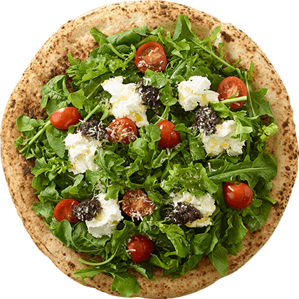 루꼴로와 바질 등 다양한 야채를 듬뿍 올린